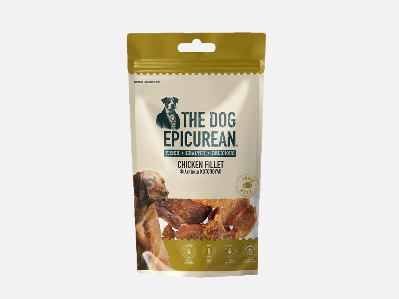 Τα dog epicurean μια εξαιρετική επιλογή λιχουδιάς γιατί παρασκευάζεται με φυσικό τρόπο από ψημένο κρέας στο φούρνο χωρίς γλουτένη,καλαμπόκι και GMO.