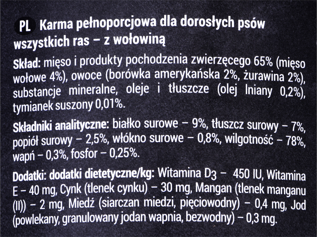 Υγρή τροφή με βοδινό, bluberry και cranberry.