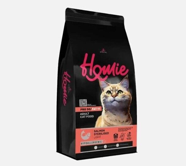 Η Homie Cat Adult Sterilised Salmon είναι πλούσια σε σολομό με χαμηλή περιεκτικότητα σε δημητριακά (Low Grain) και είναι κατάλληλη για στειρωμένες και υπέρβαρες γάτες. Υποστηρίζει την υγεία του ουροποιητικού συστήματος μετά τη στείρωση και βοηθά στη διατήρηση ενός υγιούς βάρους, χάρη στη μειωμένη περιεκτικότητά της σε υδατάνθρακες.